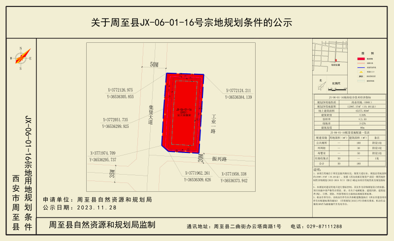 周至县自然资源和规划局关于周至县JX-06-01-16号宗地用地规划条件的公示