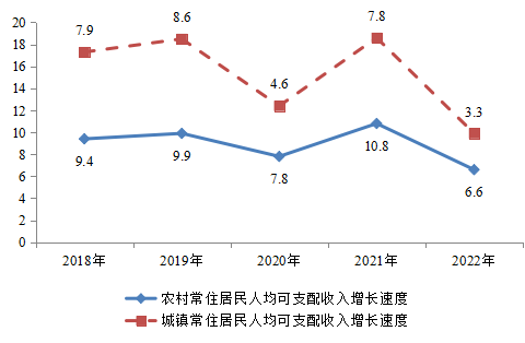 图6 2018——2022年城乡居民人均可支配收入增长速度(%)