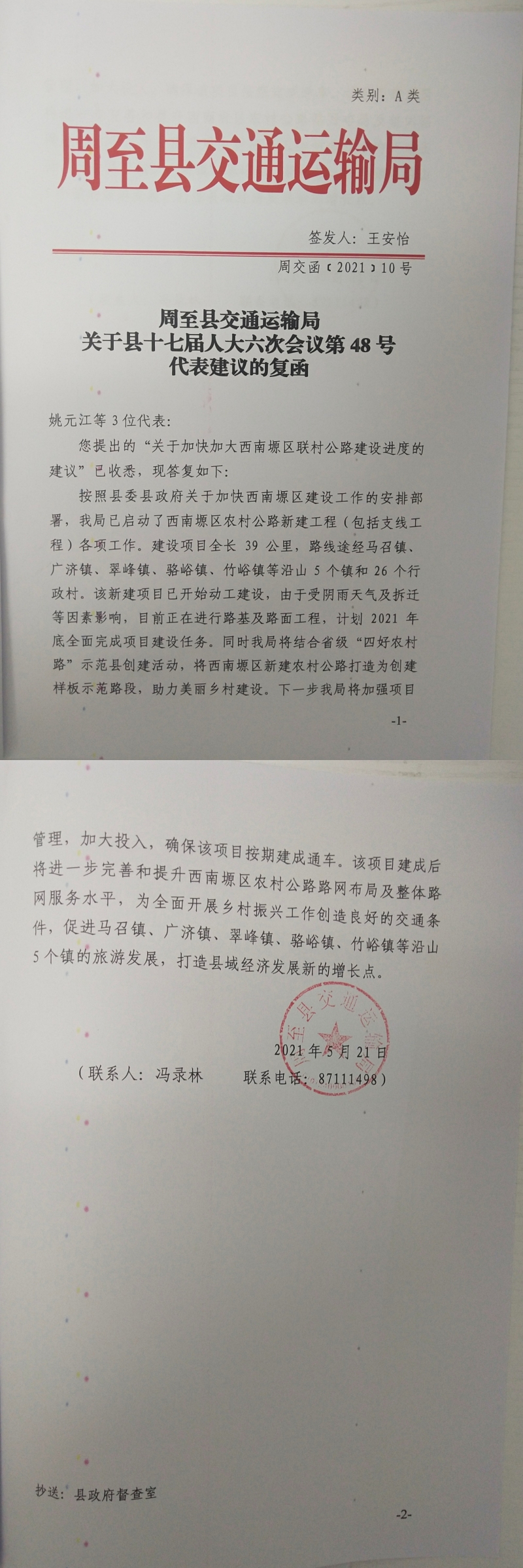 周至县交通运输局关于县十七届人大六次会议第48号代表建议的复函.jpg
