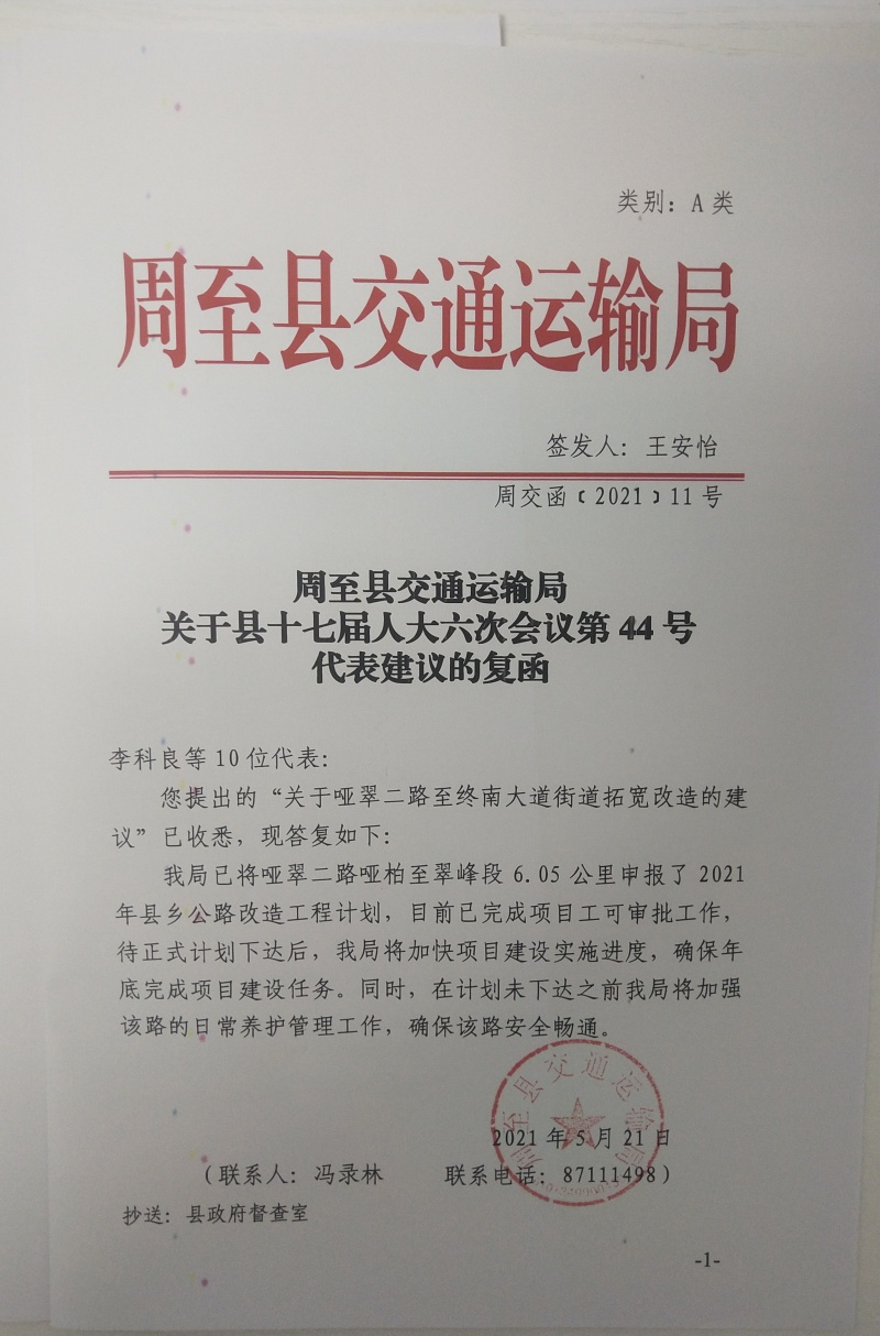周至县交通运输局关于县十七届人大六次会议第44号代表建议的复函.jpg