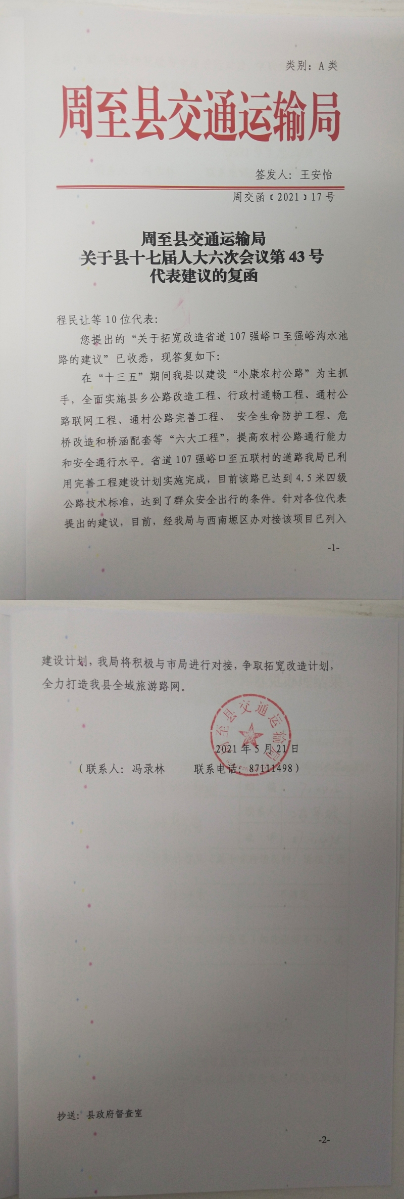 周至县交通运输局关于县十七届人大六次会议第43号代表建议的复函.jpg