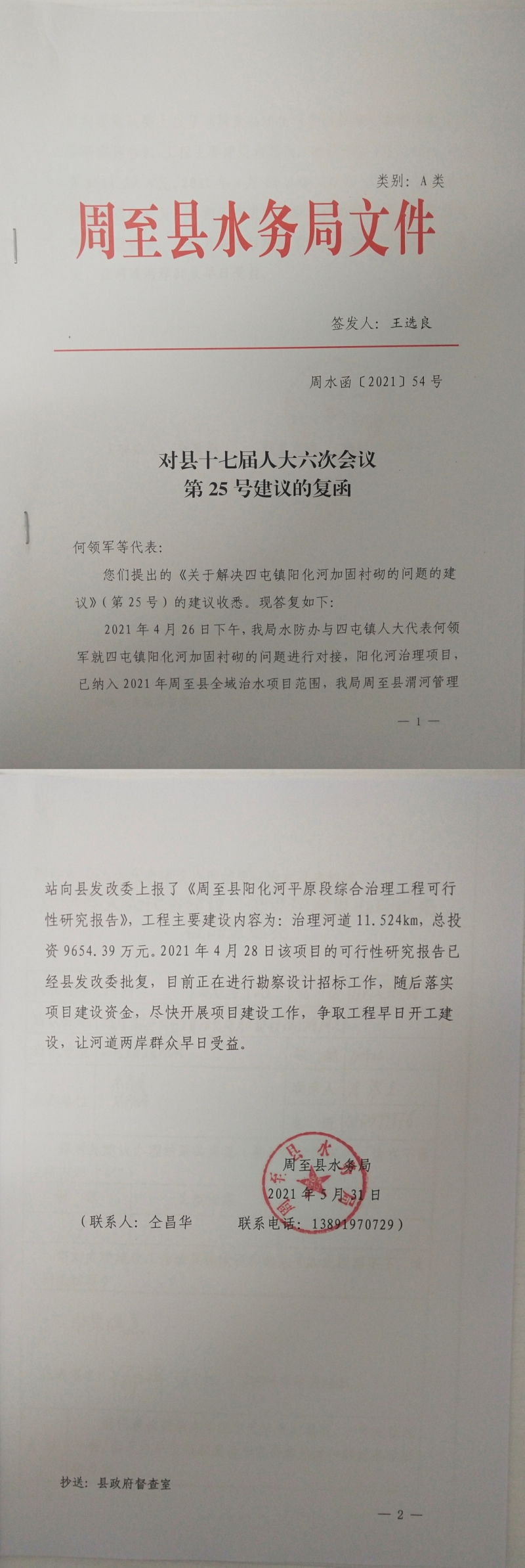 周至县水务局关于对县十七届人大六次会议第25号建议的复函