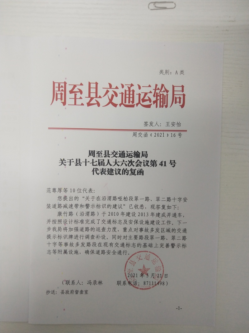 周至县交通运输局关于县十七届人大六次会议第41号代表建议的复函.jpg