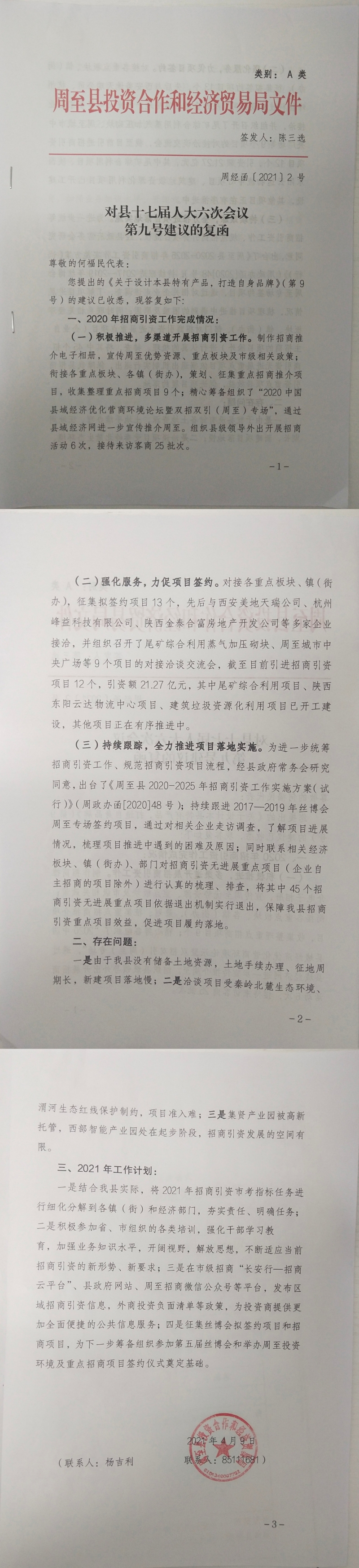 周至县投资合作和经济贸易局关于对县十七届人大六次会议第九号建议的复函.jpg