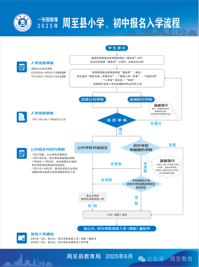 一图看懂 | 2025年周至县小学、初中报名入学流程