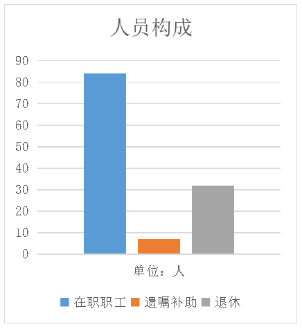截至2019年底,人员编制72人,实有人员84人。其中,行政编制36人,事业编制36人;行政在岗人员38人,工勤人员0人,事业在岗人员46人,单位管理的离退休人员32人。