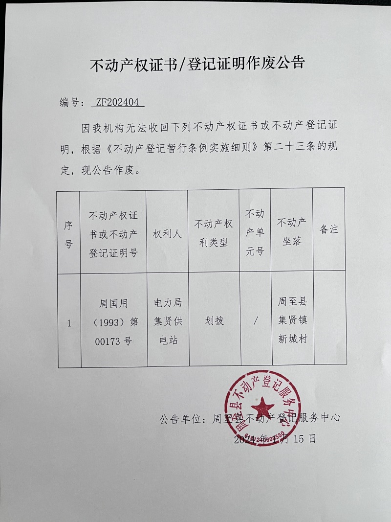不动产权证书作废公告