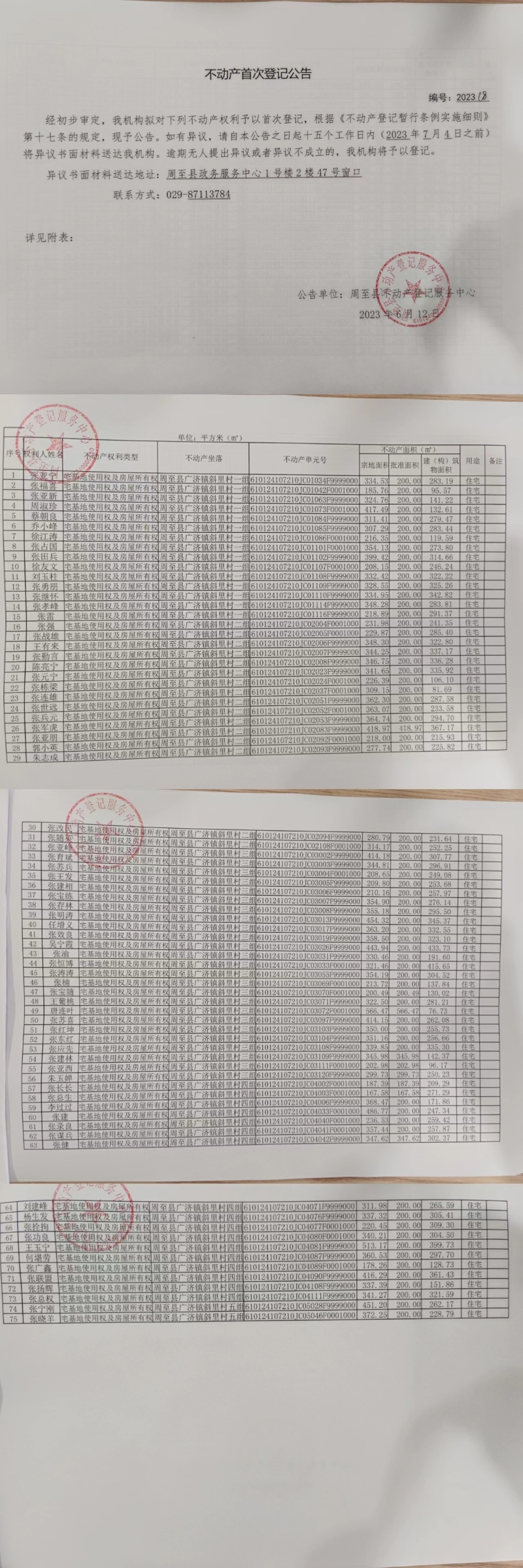 不动产首次登记公告