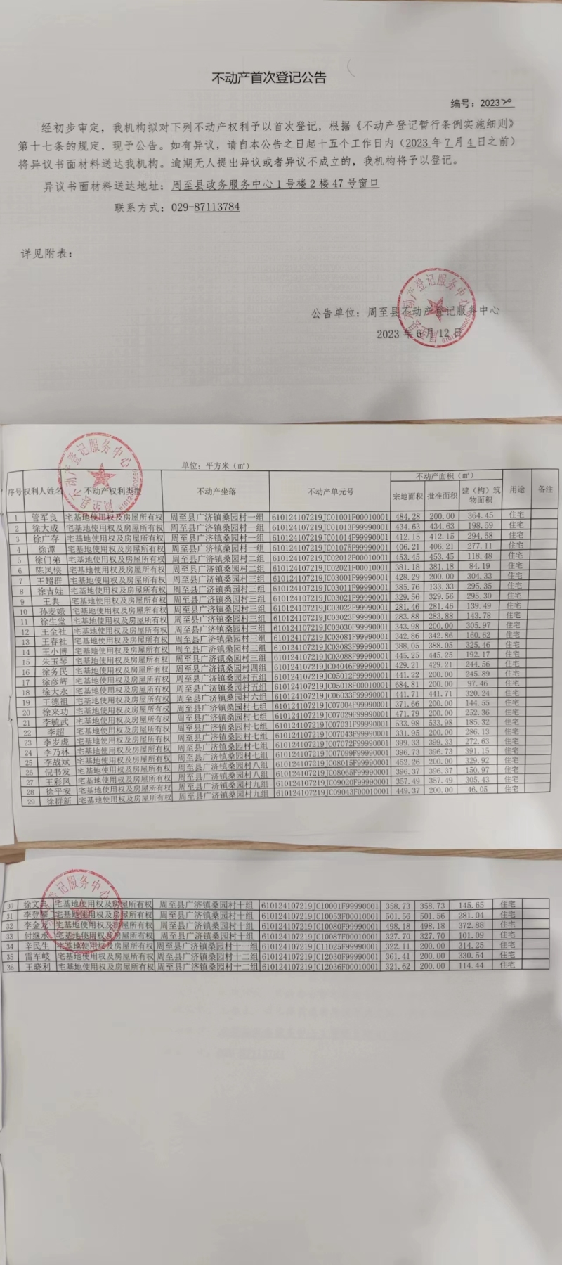 不动产首次登记公告