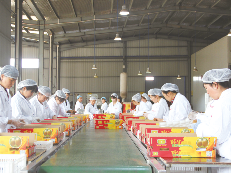 西安市聚仙食品有限公司包装车间里,工人正在包装猕猴桃。