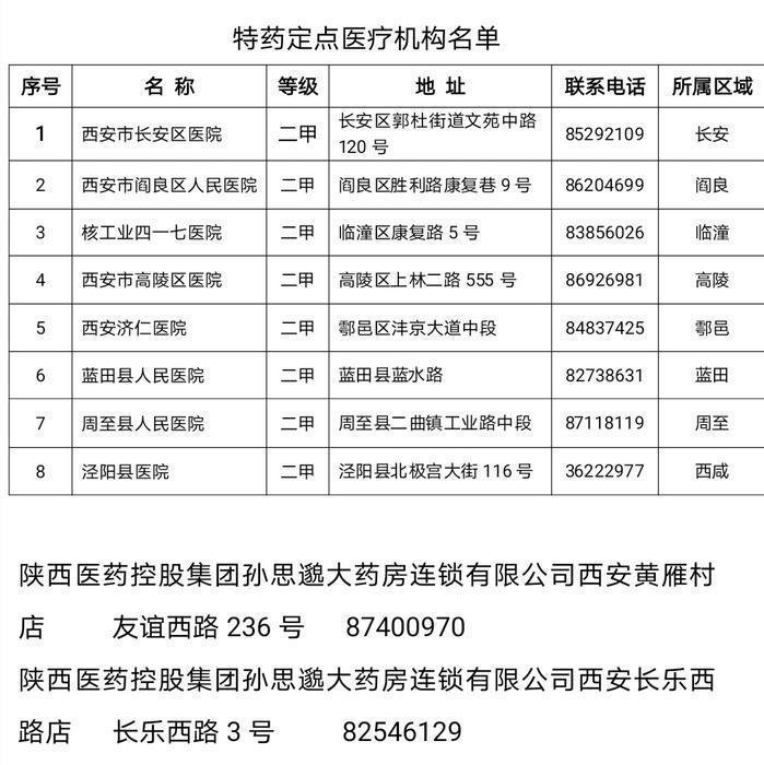本次新增医保特药定点医药机构主要将位置分布、便利群众作为重要因素综合考量,统筹推进医保特药定点医药机构设置,在长安、阎良、临潼、高陵、鄠邑、蓝田、周至、西咸等8个区县各选定1家特药定点医疗机构,填补了远郊区县“空白”。目前,全市特药定点医疗机构总数增至39家,实现区县全覆盖。在主城区人员密集地段增加了2家定点零售药店,全市特药定点零售药店增至7家。