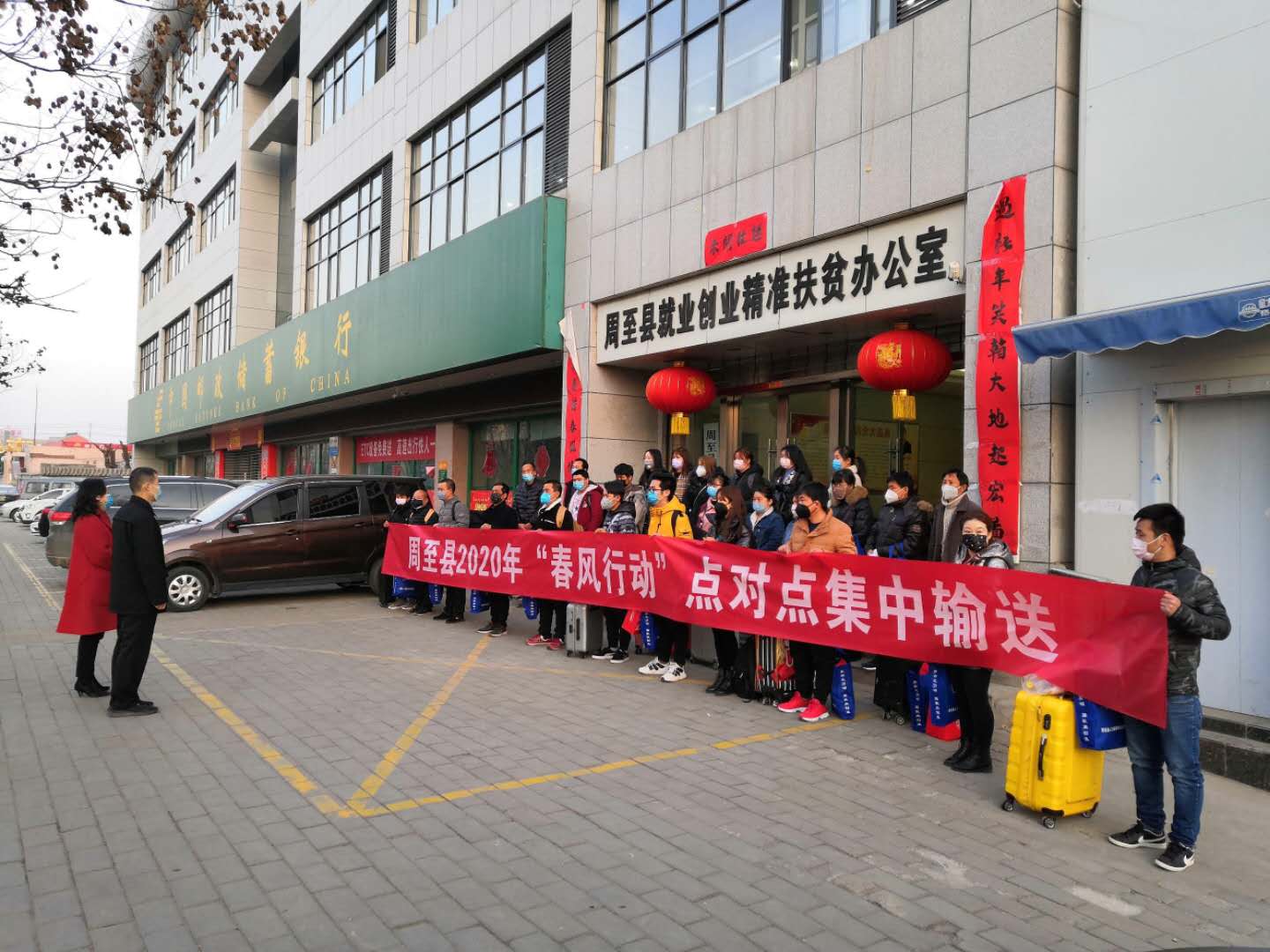 2月23日,周至县人社局和太仓人社局两地接力,采取统一包车、免费护送、协调加挂绿色高铁专厢的方式,有效解决务工人“出行难”,帮助大家“出门进车门,下车进厂门”,让急需复工的一批周至农民工(其中贫困户5名)安全有序返岗。
