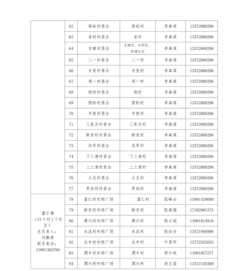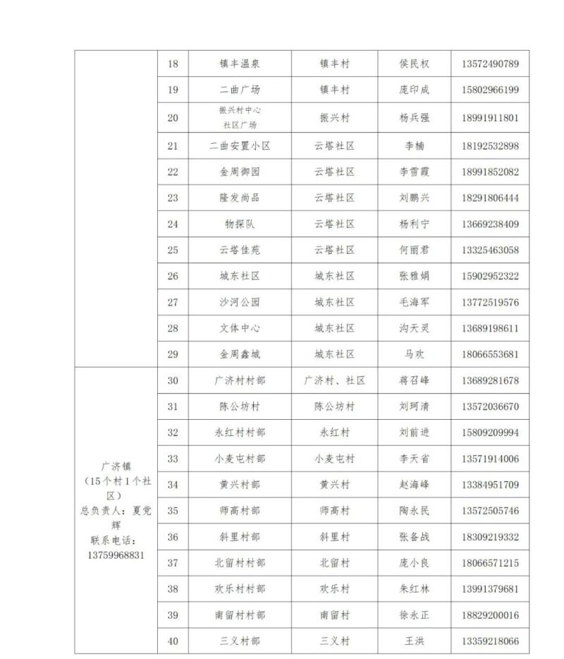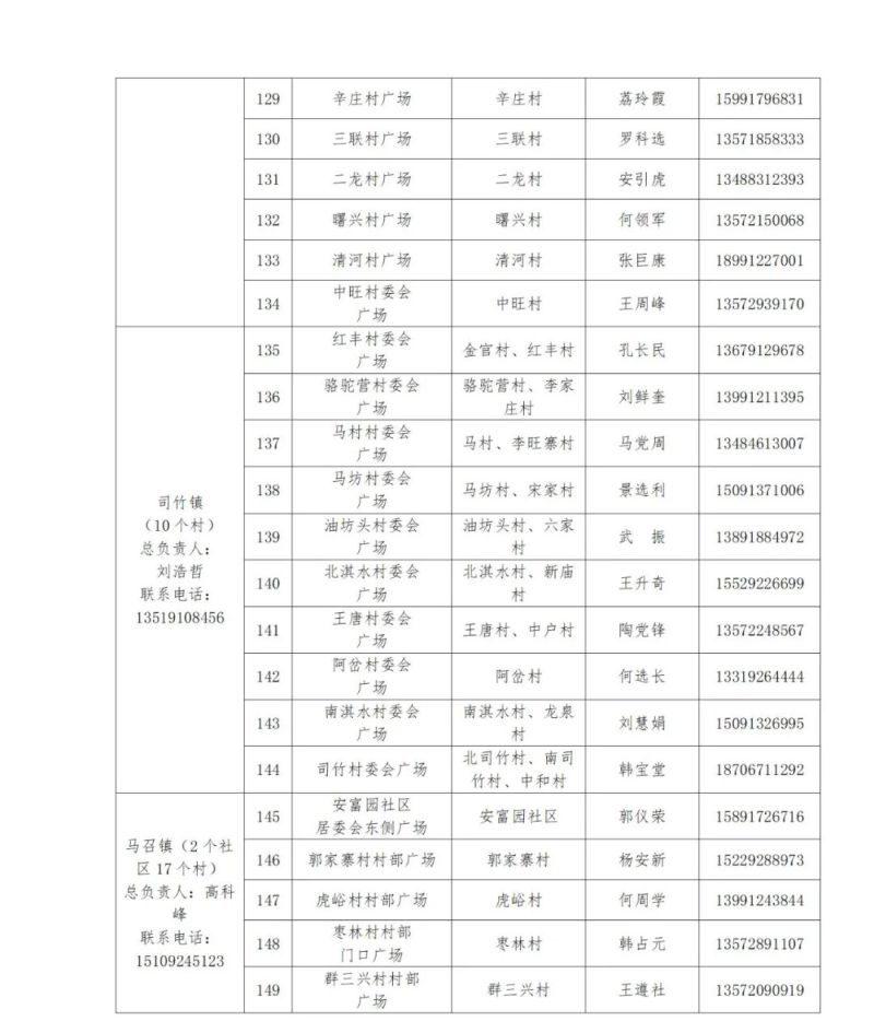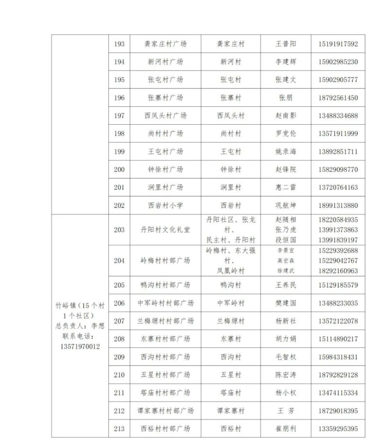 除山区四镇外,全县各镇街均设采样点,具体详见附件。