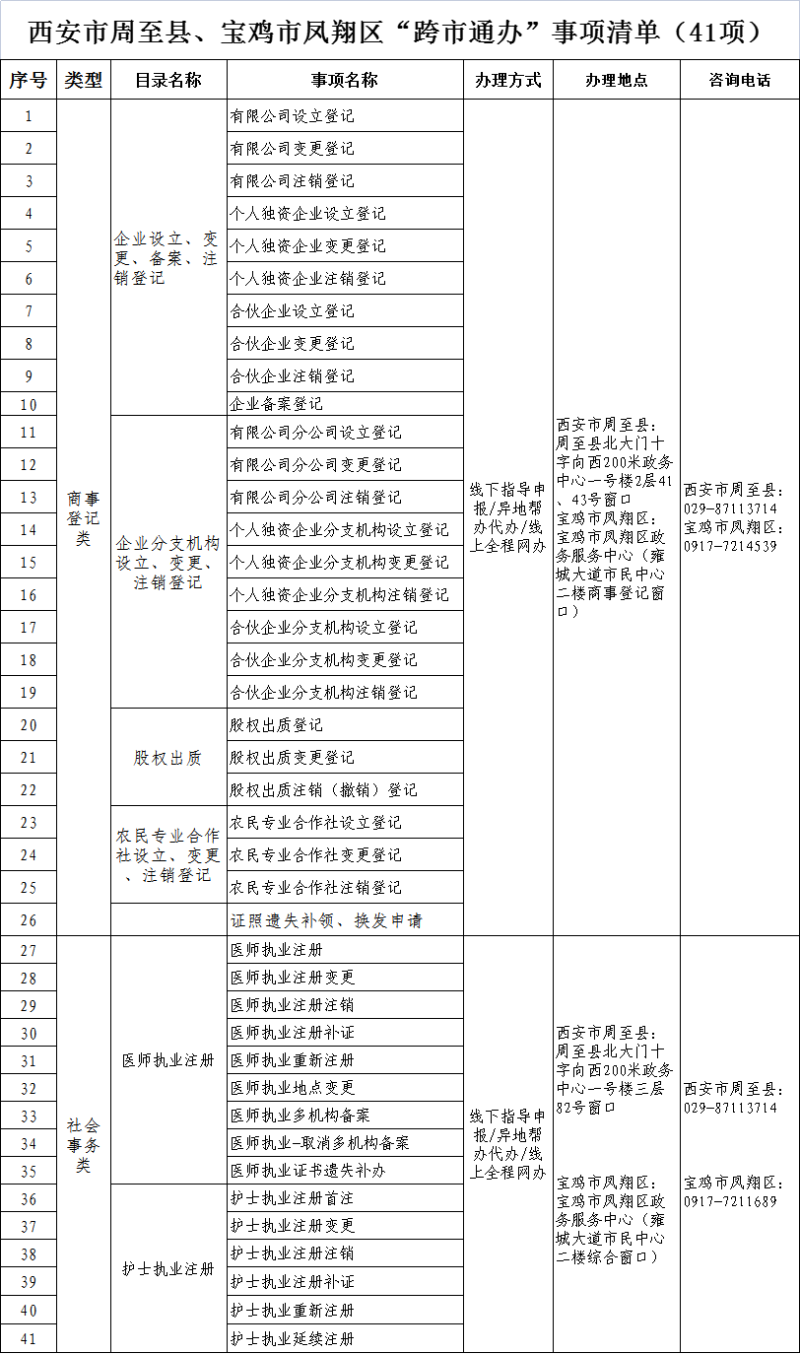 为持续深化“放管服”改革,优化“四最”营商环境,进一步拓宽“跨区通办”领域和范围,有效缓解企业群众异地办事“往返跑腿”问题,西安市周至县、宝鸡市凤翔区经研讨,决定推行政务服务事项跨区办理,让两区县企业群众充分享受改革红利,实现互利互惠、共赢发展。