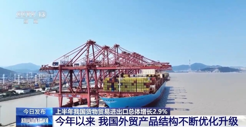 上半年货物贸易进出口总体增速达到2.9%: