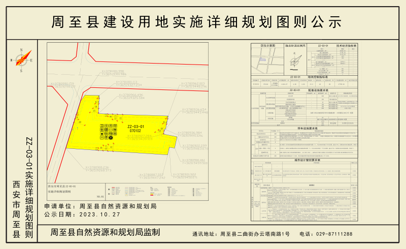 ZZ-03-01位于CZ0201-03周至城乡发展区综合商贸服务组团,工业路以南,工业路以东,建设南路以东,南大街以西,规划净用地性质为二类城镇住宅用地(070102),容积率≤2.8,建筑密度≤20%,绿地率≥35%。