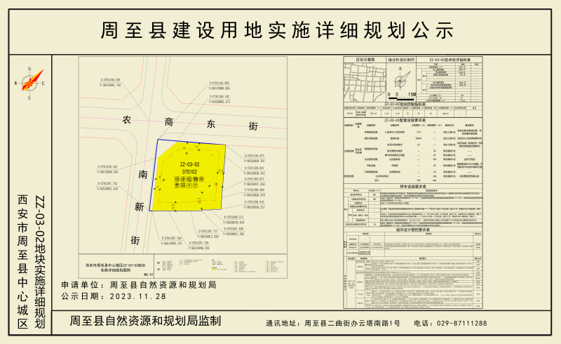 西安市周至县中心城区ZZ-03-02地块位于周至县中心城区CZ0201-03周至综合商贸服务组团居住生活单元,农商东街以南,南新街以东,规划净用地性质为二类城镇住宅用地(070102),容积率≤2.6,建筑密度≤20%,绿地率≥35%。
