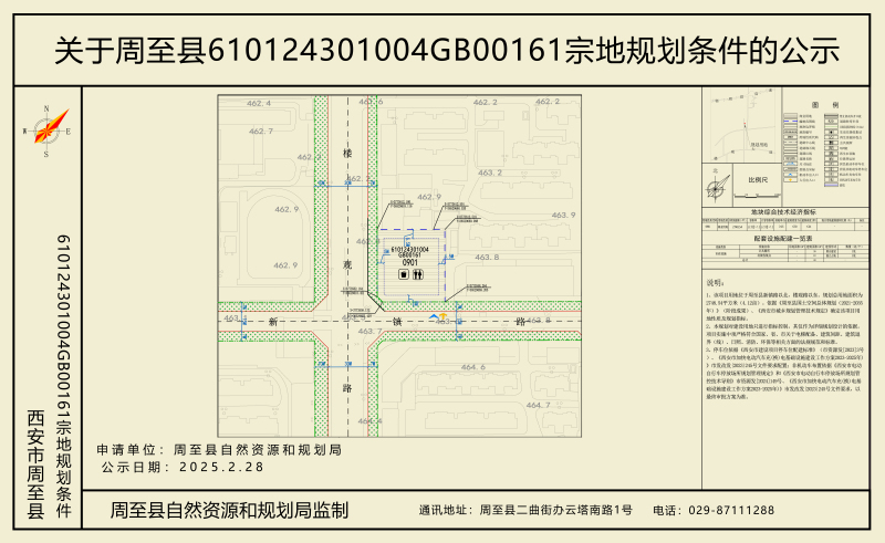 610124301004GB00161宗地位于西安市周至县行政管辖区内,楼观路以东,新镇路以北。主要指标如下:
