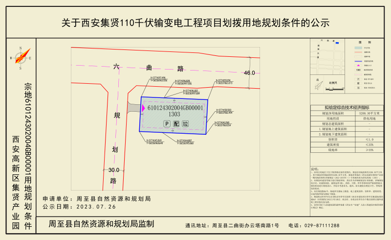 该项目用地位于集贤镇北街村范围内。用地性质为供电用地(1303),规划总用地面积约5200.30平方米(折合7.8亩),其中规划净用地面积约5200.30平方米。规划指标具体如下:容积率≤1.0;建筑密度≤35%;绿地率≥35%;规划机动车停车位及非机动车停车位按照《西安市建设项目停车位配建标准的通知》(市资源发〔2023〕3号)执行,机动车、非机动车停车位个数及面积以最终建筑工程审批内容为准。