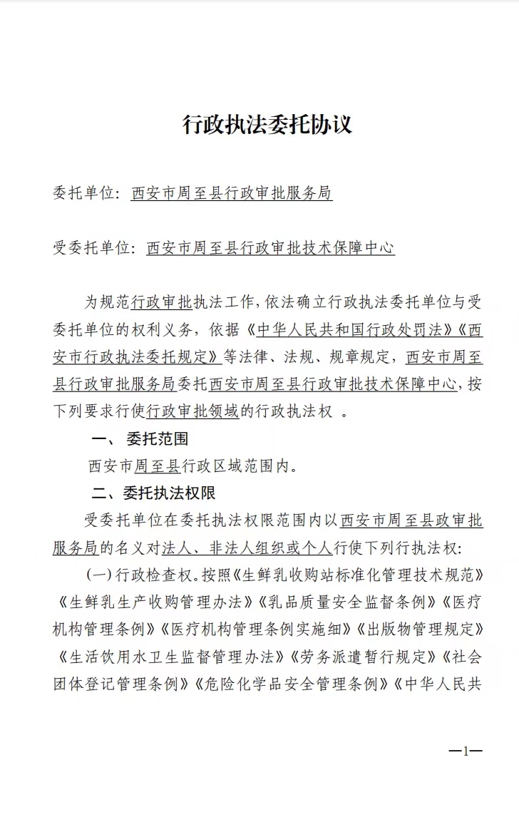 周至县行政审批服务局关于行政执法委托协议的公示