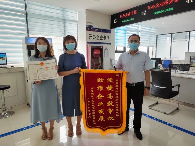 7月19日下午,西安尚龙华通机械制造有限公司负责人将一面印有“便捷高效审批、助推企业发展”的锦旗送到县政务大厅“开办企业”专窗,对其在办理企业变更过程中工作人员热情、贴心、高效的服务表示赞扬和感谢。