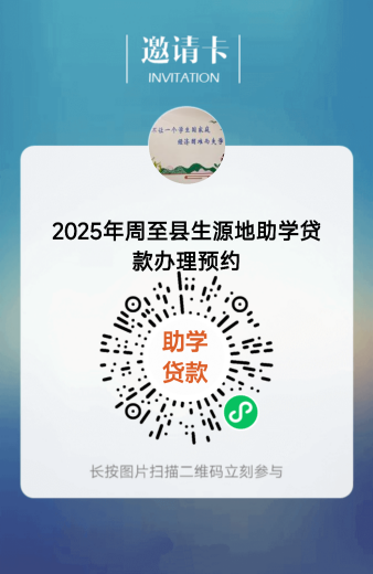 1.使用微信扫描下方二维码“2025年周至县生源地助学贷款办理预约”小程序,进行网上在线预约(小程序将于7月20日起开放)。