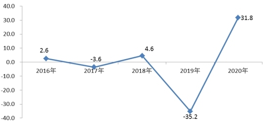图3:2016—2020年规模以上工业增加值增长速度(%)
