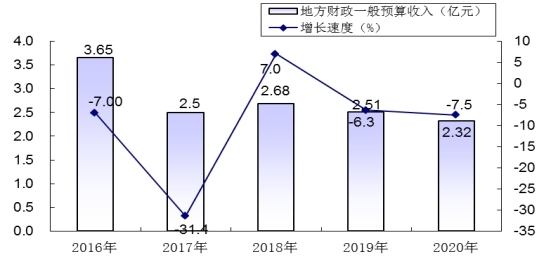 图2:2016—2020年地方财政一般预算收入及增长速度