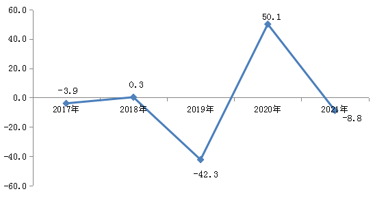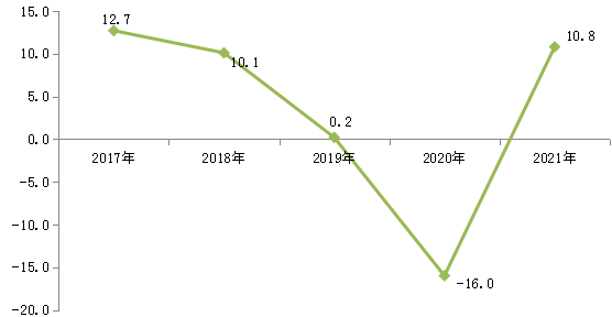 图5:2017—2021年社会消费品零售总额增长速度(%)