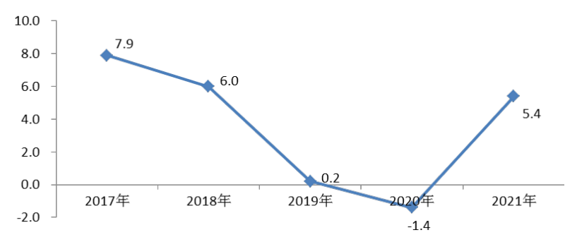 图1:2017—2021年生产总值增长速度(%)