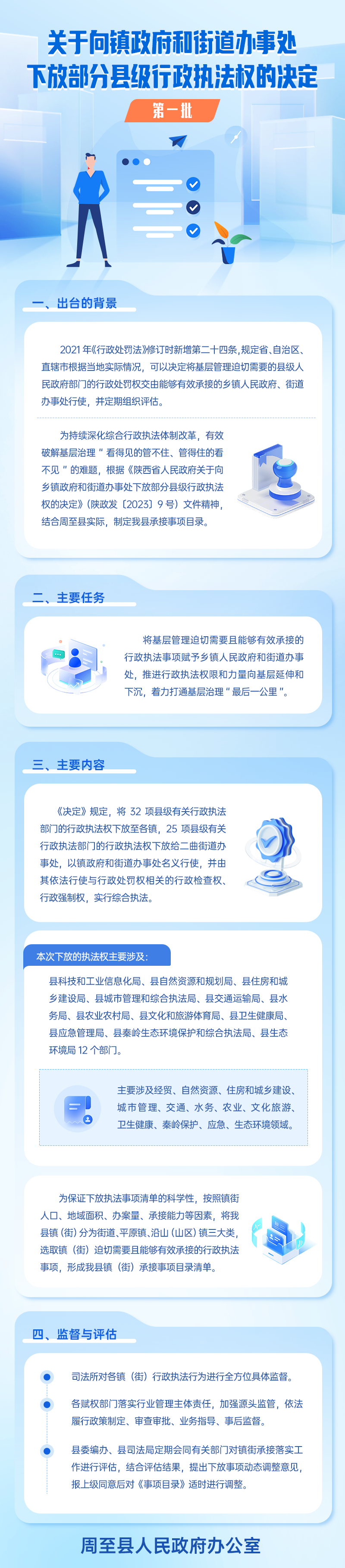 周至县人民政府 关于向镇政府和街道办事处下放部分县级 行政执法权(第一批)的决定