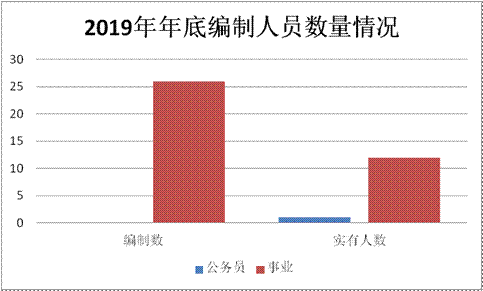 截至2019年底,本部门人员编制26人,其中行政编制0人、事业编制26人;实有人员13人,其中行政1人、事业12人。单位管理的离退休人员0人。