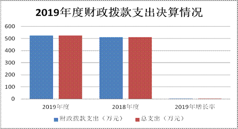 2019年财政拨款支出524.29万元,占本年支出的100%。财政拨款支出较上年增加12.92万元,增长2.52%,主要原因是单位办公耗材费用及财政人员工资调整追加预算。