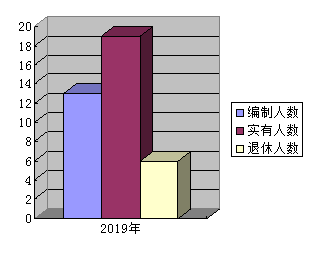 截至2019年底,人员编制13人,实有人员17人,离退休6人。