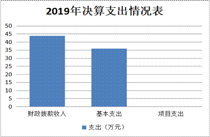 2019年度财政拨款支出43.96万元,较上年减少17.89万元,下降28.9%,主要原因是办公费、差旅费和生活补助支出减少。