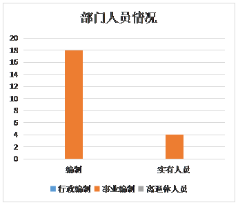 截止到2019年底,本部门共有人员编制18人,其中事业编制18人;实有人员4人,其中事业单位人员4人,本单位无离退休人员。